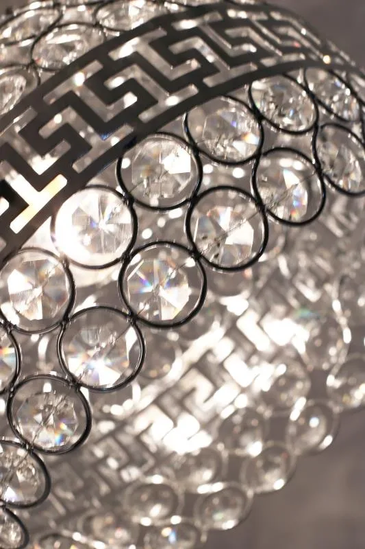 EX58-Ellens to bogato zdobiona lampa sufitowa utrzymana w stylu glamour. Jej znakiem szczególnym jest klosz wykonany z pięknych, ozdobnych kryształków. Lampa została wykonana z materiałów wysokiej jakości, dzięki czemu prezentuje się wspaniale. Szczególnie polecana do nowoczesnych, bogato zdobionych wnętrz.