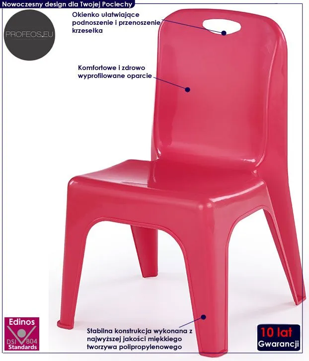 Aranżujesz pokoik dla Twojego Dziecka? Chciałabyś aby podczas rysowania czy czytania siedziało zdrowo i wygodnie? Nie chcesz spędzać w przyszłości wielu godzin w kolejce do ortopedy z Twoimi pociechami? Zadbaj o zdrowie i wygodne miejsce do nauki i zabawy Twojego dziecka. Dlaczego jest to aż takie ważne? Źle dopasowane meble powodują wady postawy już od najmłodszych lat. Zadbaj o to, aby zwłaszcza meble do siedzenia były zawsze idealnie i zdrowo wyprofilowane. Zainwestuj w profesjonalne krzesełko Moka marki Profeos i stwórz najlepsze warunki do rozwoju Twojemu Dziecku. Strzeż się tanich chińskich krzeseł, które negatywnie wpływają na kręgosłup. Zadbaj o zdrową postawę Twojego dziecka od najmłodszych lat.