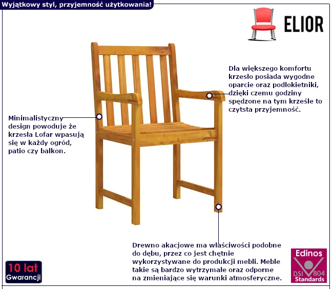Oto historia, która rozpoczyna się od minimalistycznych kształtów, ale szybko przenosi się w głąb naturalnego piękna. Wkraczając w świat mebli marki Edinos Premium, nie tylko odnajdujesz elementy do swojego wnętrza, ale wchodzisz w dialog z prawdziwą esencją elegancji. Dziś pragniemy zaprezentować Ci niezwykłą esencję - zestaw dwóch krzeseł ogrodowych Villero. To nie tylko meble, to symfonia natury, w której każdy detal ma swoje znaczenie. Pozwól sobie na chwilę relaksu, wprowadź harmonię do swojej przestrzeni z Villero, gdzie solidność drewna akacjowego splata się z wygodą i pięknem formy. Odkryj z nami, jak prosta elegancja może przemieniać zwykłe chwile w niezapomniane doznania.