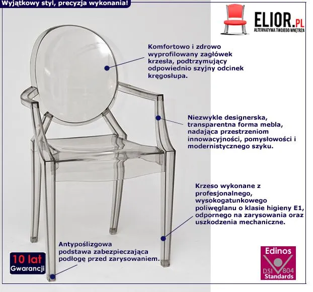 transparentne krzesła w sklepie Edinos.pl. Stwórz swój praktyczny zestaw mebli.