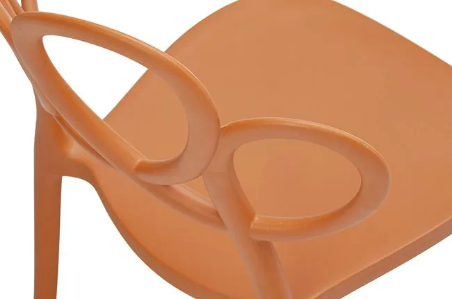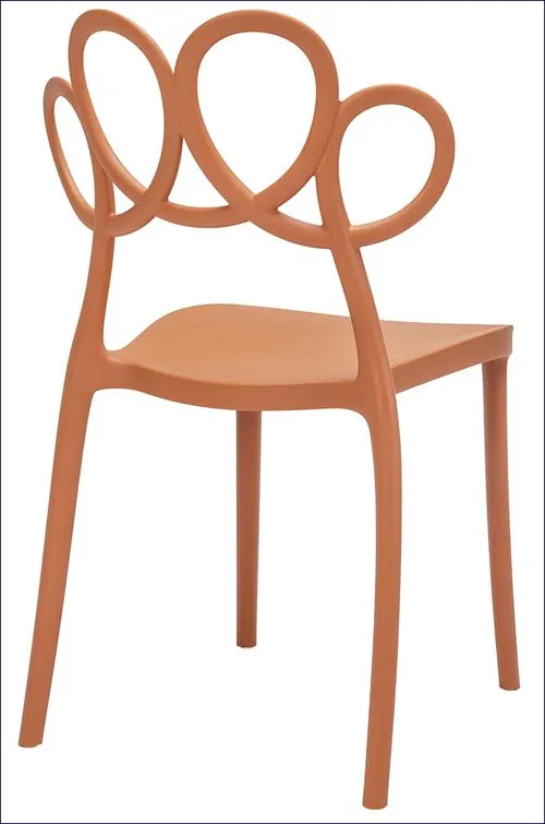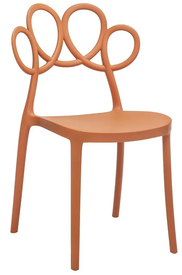 Krzesło Doreno to wyjątkowo wdzięczne połączenie awangardowego designu z najwyższą jakością i precyzją wykonania. Precyzyjnie skonstruowane krzesło posiada komfortowe oparcie przypominające zabawne petęlki. Designerska forma ażurowego oparcia forma ułatwia cyrkulację powietrza, co znacznie podnosi komfort użytkowania, dodatkowo nadaje wrażenie wizualnej lekkości, przez co mebel nie przytłoczy nawet niewielkiego pomieszczenia. Doskonale wyważona podstawa i stabilne nogi o optymalnej wysokości w połączeniu z ciekawym odcieniem matowgo brązu oraz stylizowaną, falistą ornamentyką oparcia nadają mu niebanalnego i odrobinę żartobliwego charakteru. Tak skonstruowane krzesło świetnie się sprawdzi w jadalni lub w salonie ze strefą jadalną. W domowym biurze lub gabinecie będzie komfortowym krzesłem do biurka, a w sypialni wygodnym i wdzięcznie wyglądającym krzesłem do toaletki. Ten praktyczny i oryginalny mebel fantastycznie pokreśli stylowy wystrój wnętrz restauracyjnych. Dzięki zastosowaniu nowoczesnego surowca polipropylenowego Balter Premium marki Elior z możliwością zmywania na mokro krzesło Firi będzie rewelacyjnym wyposażeniem kawiarnianych ogródków czy słonecznych tarasów i balkonów. Jego modernistyczny charakter czerpiąc z najlepszych wzorców designu, dzięki zastosowaniu koloru i awangardowej, zabawnej formy powooduje, że Doreno doskonale wpisuje się w rożnorodne aranżacje - od minimalistycznej i skandynawskiej po wnętrza w stylu klasycznym oraz modern retro. Baw się formą i kolorem - zobacz jak radośnie urządzisz swoje wnętrze z krzesłami Doreno!