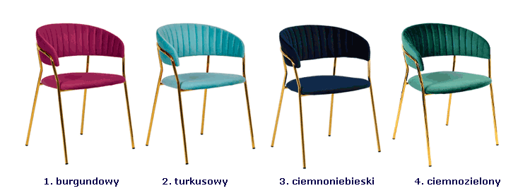 Modne kolory: burgundowy, turkusowy, ciemnoniebieski i ciemnozielony. Kliknij w link i wybierz swoją ulubioną wersję krzesła Milwa. Poinformuj nas o swoim wyborze w komentarzu do zamówienia lub drogą mailową.