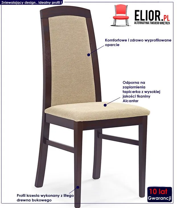 - Materiał: Naturalne lite drewno bukowe oraz wysokiej jakości tkanina Alcantar.