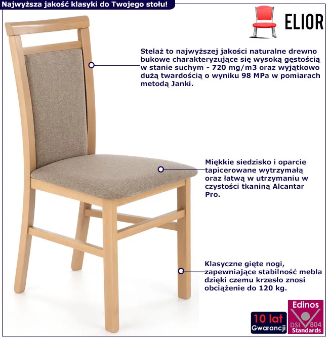 Dotyczy: Klasyczne tapicerowane krzesło drewniane dąb sonoma - Kensa 5X