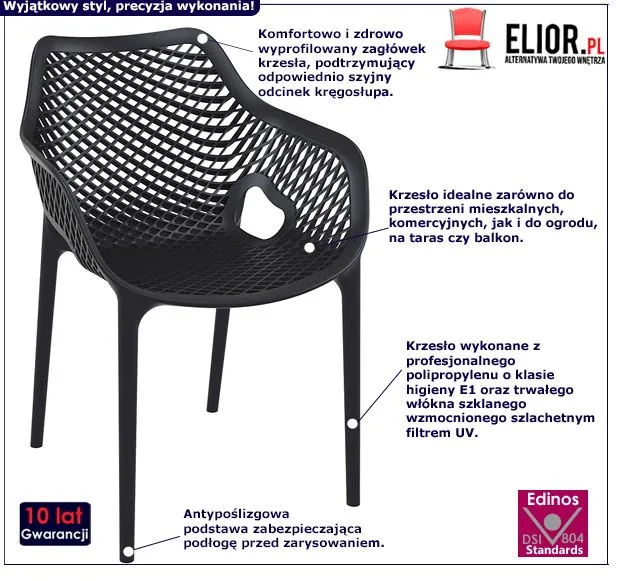 Starannie i stylowo zaprojektowane krzesło Ewers 2X jest meblem cechującym się modną, niezwykle gustowną formą. Jest to zasługa między innymi starannie dobranych i niezwykle trwałych materiałów meblarskich. Dzięki nim loftowe krzesło użytkuje się naprawdę wygodnie, przyjemnie i co istotne – bez uszkodzeń przez wiele lat. Do produkcji innowacyjnego krzesła Ewers 2X wykorzystano nowoczesne surowce wysokiej klasy. Siedzisko oraz oparcie fotela to designerski polipropylen odporny na zaplamienia i rysy oraz na niekorzystne działanie czynników atmosferycznych oraz profesjonalne włókno szklane odporne na naprężenia mechaniczne, wzmocnione szlachetnym filtrem UV. Dzięki tym surowcom Ewers 2X doskonale sprawdza się nie tylko wewnątrz mieszkań, ale i na zewnątrz nich. Jakże to istotne, by meble, w które inwestujemy cechowało wytrzymałe, staranne wykonanie. Na szczęście z kapitalnym krzesłem Ewers 2X nie trzeba się o to martwić! Ten pełen modernistycznego i eleganckiego charakteru mebel wciąż cieszy oko niebywałym wdziękiem. Ewers 2X posiada bezsprzecznie wiele zalet – trwałość, stabilność, dokładne wykonanie, funkcjonalizm i oczywiście świeżą, pełną klasy i pomysłowości prezencję. Chyba każdy przyzna, że warto mieć tak ekstrawagancki i funkcjonalny mebel w swoich starannie i przemyślanie zaaranżowanych i wypielęgnowanych stylowo przestrzeniach.