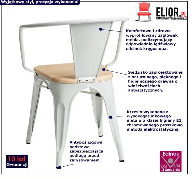 - Modna kolorystyka: biały, naturalne drewno. Kliknij w link i sprawdź także inne krzesła loftowe w sklepie Edinos.pl. Stwórz swój praktyczny zestaw mebli.