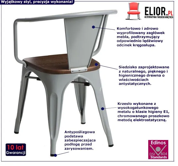 - Modna kolorystyka: szary, naturalne drewno. Kliknij w link i sprawdź także inne krzesła loftowe w sklepie Edinos.pl. Stwórz swój praktyczny zestaw mebli.