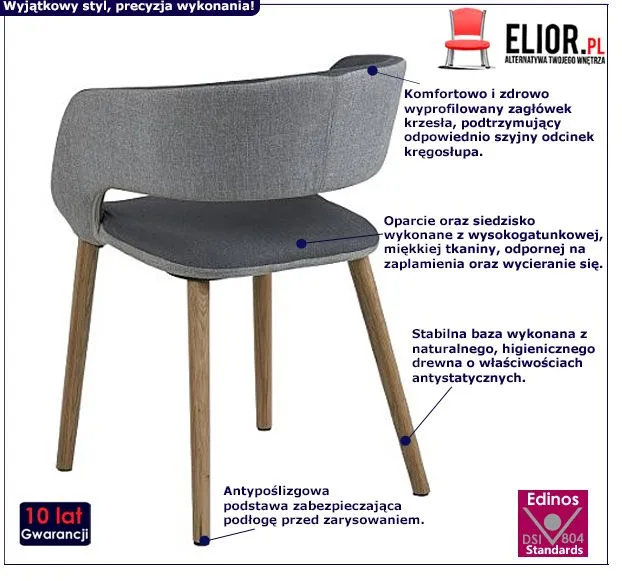 Modernistyczne krzesło Toles jest meblem cechującym się starannością i niezwykłą dokładnością wykonania. To zasługa między innymi profesjonalnie dobranych i niezwykle trwałych materiałów meblarskich. Dzięki nim Toles użytkuje się naprawdę wygodnie, przyjemnie i co istotne – bez uszkodzeń przez wiele lat. Do produkcji wyrafinowanie zaprojektowanego Toles wykorzystano nowoczesne surowce wysokiej klasy. Siedzisko oraz oparcie fotela wysokogatunkowa i miękka tkanina, odporna na zaplamienia i wycieranie się. Siedzisko osadzono na naturalnym, higienicznym drewnie dębowym posiadającym właściwości antystatyczne. Zostało ono poddane specjalistycznemu olejowaniu, uwydatniającemu walory estetyczne tego przepięknego surowca. Drewno jest niezwykle wytrzymałym materiałem meblowym, zapewniającym stabilność oraz przepiękny design krzesła. To niezwykle istotne, by meble, w które inwestujemy cechowało wytrzymałe, staranne wykonanie. Na szczęście z oryginalnie zaprojektowanym krzesłem Toles w nowoczesnym wydaniu nie trzeba się o to martwić! Zachwycające i pełen skandynawskiego wdzięku krzesło Toles wciąż cieszy oko niebywałym szykiem. Ten mebel posiada niezaprzeczalne zalety – trwałość, stabilność, dokładne wykonanie, funkcjonalizm i oczywiście jakże modną, innowacyjną prezencję. Chyba każdy przyzna, że warto mieć tak piękny i komfortowy model krzesła u siebie. Przepiękne i modernistyczne krzesło Toles to sama radość użytkowania. Nowoczesne, stylowe, komfortowe, starannie zaprojektowane, uniwersalne… Oto cechy wyjątkowego krzesła Toles. Z tak fantastycznie skonstruowanym meblem urządzisz się awangardowo i wygodnie. Przekonaj się o tym już teraz!