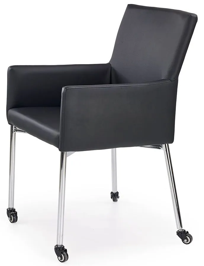 Nowoczesne i komfortowe krzesło Charlotte 4Q wyróżnia się nie tylko swoją unikalną formą, ale także zastosowaniem materiałów najlepszej jakości. Designerska czarna tapicerka pokryta została wysokiej jakości ekoskórą (skórą ekologiczną), łatwą do utrzymania w czystości. Ekoskóra używana przy produkcji mebli marki Profeos jest o wiele bardziej odporna na słońce oraz substancje płynne , co pozwala Ci na długie i bezpieczne użytkowanie. Już nie musisz się martwić, że rozlana kawa spowoduje konieczność wymiany mebla. Skóra ekologiczna marki Profeos została pokryta warstwą polichlorku winylu. Profil fotela stworzony jest z najwyższej jakości stali chromowanej o zawartości aż stali nierdzewnej oraz chromu co gwarantuje mu niezwykły efekt wizualny, posiadając przy tym ponadprzeciętne cechy antykorozyjne oraz lepszą odporność na uszkodzenia mechaniczne . Miękkie i ciche kauczukowe kółka dodatkowo zwiększają komfort użytkowania mebla. Dzięki swojej prostej formie i stonowanej kolorystyce krzesło Charlotte 4Q świetnie odnajduje się zarówno w pomieszczeniach mieszkalnych, jak też komercyjnych. Doskonale sprawdza się również jako komfortowy fotel biurowy. Pozwól mu efektownie odmienić także Twoje wnętrze!