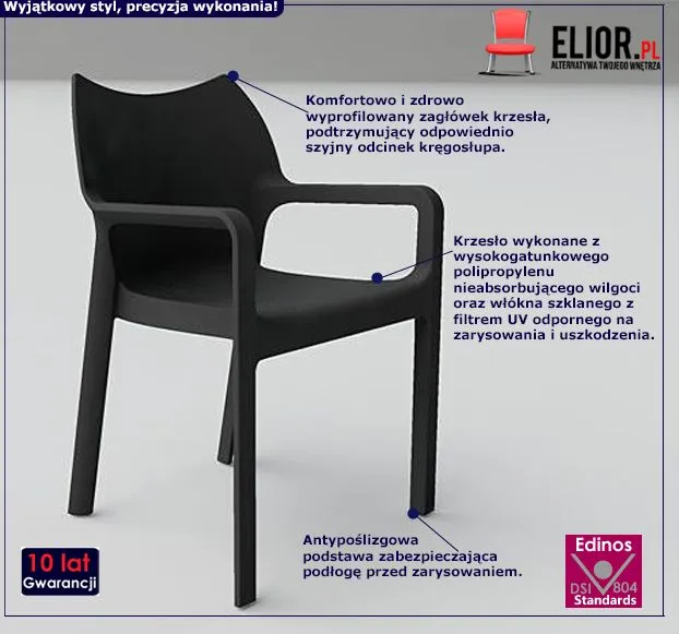 Funkcjonalnie zaprojektowane krzesło Trefix jest meblem cechującym się ciekawą, ale i uniwersalną formą. Jest to zasługa między innymi starannie dobranych i niezwykle trwałych materiałów meblarskich. Dzięki nim krzesło użytkuje się naprawdę wygodnie, przyjemnie i co istotne – bez uszkodzeń przez wiele lat. Do produkcji krzesła wykorzystano poddany specjalistycznej obróbce, nowoczesny surowiec. Jest to wysokogatunkowy polipropylen o klasie higieny E1, odporny na zarysowania i uszkodzenia mechaniczne z filtrem UV, chroniącym krzesło przed szkodliwym działaniem czynników zewnętrznych. Polipropylen łatwo się czyści, co znacznie ułatwia codzienne użytkowanie krzesła. Jakże to istotne, by meble, w które inwestujemy cechowało wytrzymałe, staranne wykonanie. Na szczęście z fantastycznym krzesłem Trefix nie trzeba się o to martwić! Ten pełen modernistycznego, a przy tym interesującego charakteru mebel wciąż cieszy oko niebywałym wdziękiem. Trefix posiada bezsprzecznie wiele zalet – trwałość, stabilność, dokładne wykonanie, funkcjonalizm i oczywiście świeżą, pełną klasy i pomysłowości prezencję. Chyba każdy przyzna, że warto mieć tak ekstrawagancki i funkcjonalny mebel w swoich starannie i przemyślanie zaaranżowanych i wypielęgnowanych stylowo przestrzeniach. Z wygodnie i trwale zaprojektowanym krzesłem Trefix na pewno urządzisz się komfortowo i stylowo. Przekonaj się o tym już teraz!