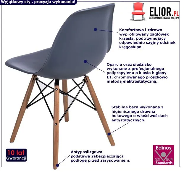 - Modna kolorystyka: ciemnoszary, naturalne drewno. Kliknij w link i sprawdź także inne szare krzesła w sklepie Edinos.pl. Stwórz swój praktyczny zestaw mebli.