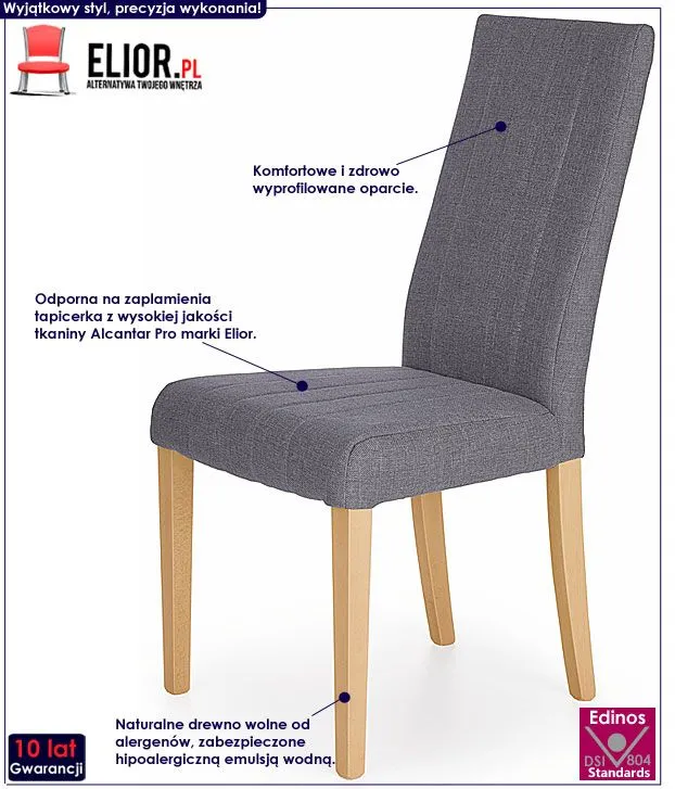 - Modny kolor: Tapicerka ciemnopopielata, profil krzesła w kolorze dąb miodowy. Kliknij w link i sprawdź także inne szare krzesła w sklepie Edinos.pl. Stwórz swój praktyczny zestaw mebli.