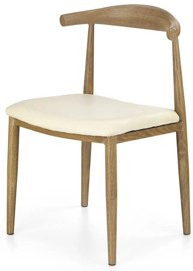 - Modny kolor: Tapicerka kremowa, profil krzesła w kolorze dąb miodowy.