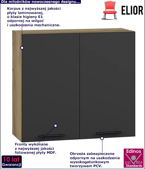 - Kolor: Front w kolorze antracyt, korpus dąb craft. Uchwyty metalowe - chromowane. Kliknij i sprawdź także inne szafki kuchenne w sklepie Edinos.pl. Stwórz swój praktyczny zestaw mebli.