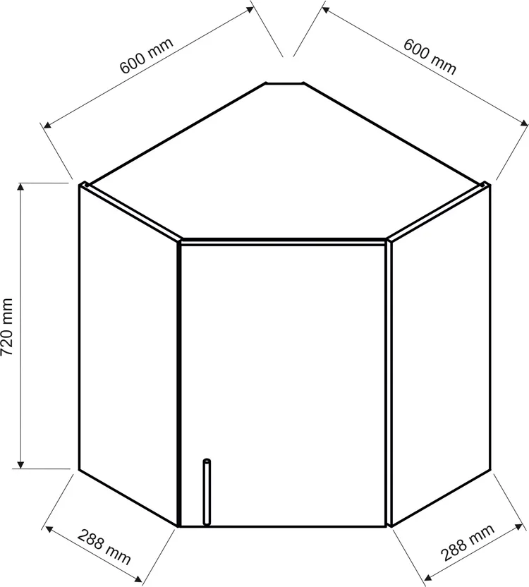 • Wymiary całkowite: wysokość: 72 cm, szerokość tylnych ścianek: 60 cm, głębokość bocznych ścianek: 28,8 cm.