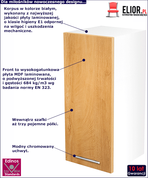 - Kolor: Front w kolorze dębu miodowego, biały korpus. Uchwyty metalowe - chromowane. Kliknij i sprawdź także inne szafki kuchenne w sklepie Edinos.pl. Stwórz swój praktyczny zestaw mebli.