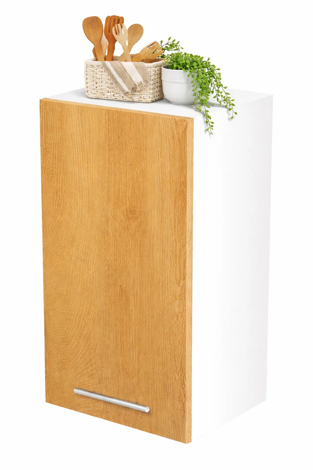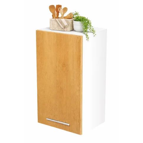 System mebli kuchennych Limo to źródło inspirujących propozycji pozwalających stworzyć komfortową, nowoczesną i piękną przestrzeń. Jednym z elementów tej "meblowej układanki" jest szafka górna Vokres 21X, która zadba o ład i porządek w Twojej kuchni. Jej pojemne półki przechowają Twoje talerze, kubki, przyprawy, suchą żywność czy inne akcesoria potrzebne w kuchni. Prezentowany model szafki spełni oczekiwania nawet najbardziej wymagającej pani domu. Vokres 21X to solidny mebel, wykonany z najwyższej jakości materiałów, z dbałością o każdy, nawet najmniejszy szczegół. Biały korpus to część mebla wyprodukowana z wytrzymałej laminowanej płyty o klasie higieny E1. To surowiec o doskonałych walorach estetycznych oraz niesamowitej trwałości i funkcjonalności. To produkt na lata. Laminowane meble są odporne na wilgoć, zarysowania i inne uszkodzenia mechaniczne, czyli na wszystko to na co każdego dnia narażone są meble w królestwie kulinarnych zapachów i smaków. A to jeszcze nie koniec listy atutów prezentowanego mebla. Na szczególną uwagę zasługuje front szafki, który wyprodukowany jest z wysokogatunkowej płyty MDF laminowanej o podwyższonej trwałości i gęstości. Tego rodzaju front to niczym najpiękniejsze przebranie dla Twojej szafki, to dzięki niemu Twoja kuchnia nabierze blasku, charakteru i wyróżni się spośród setek innych mebli. Kolejną ozdobę szafki Vokres 21X jest chromowany uchwyt. Jego ergonomiczny kształt przekłada się na komfortowe użytkowanie mebla. Atrakcyjność produktu potęguje fakt, że w tej samej propozycji cenowej istnieje możliwość wyboru koloru frontu szafki spośród: białego, beżowego, jasnego popielu i dębu miodowego. Na wyróżnienie zasługują również zawiasy frontów z mechanizmem cichego domykania, które znacząco podnoszą komfort użytkowania. System skutecznie wyhamowuje drzwi zamykane z rozmachem. Dzięki niemu fronty otwierają się łatwo i niezawodnie oraz delikatnie i cicho domykają. To idealne rozwiązanie dla osób ceniących sobie spokój albo dla tych, którzy mają dzieci. Prezentowany model szafki to doskonały wybór dla wszystkich tych, którzy cenią sobie funkcjonalne, ponadczasowe i solidne meble.