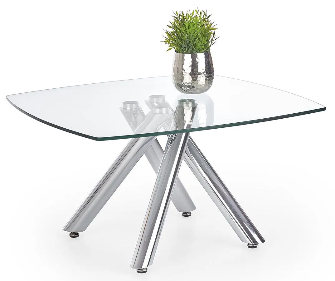 Niezwykłe połączenie grubego szkła i stali chromowanej sprawia, że wszystkie elementy wokół ławy Tamas nabierają finezji i dyskretnego uroku. Produkt ten to wyjątkowy dodatek do wystroju, który stanie się nie tylko ozdobą, ale również praktycznym elementem wyposażenia. Jeżeli poszukujesz eleganckiej ławy do salonu, wyróżniającej się prezencją i wykonaniem, Tamas to model idealny dla Ciebie! Oryginalna w formie konstrukcja ławy wykonana została z profesjonalnej stali chromowanej który nadaje niesamowity i trwały design. Kwadratowy, bezbarwny  blat wyprodukowany jest z podwójnie hartowanego szkła, dzięki czemu jest on całkowicie odporny na rysy i uszkodzenia. Ozdób swój salon nie tylko barwnym dekoracjami, ale i przezroczystą ławą, która świetnie skomponuje się z meblami w dowolnym stylu.
