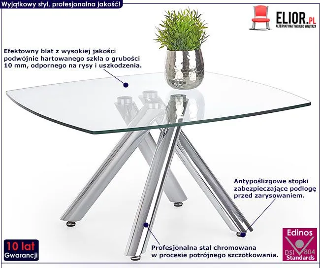 - Kolor: Bezbarwny. Kliknij w link i sprawdź także inne kwadratowe stoliki w sklepie Edinos.pl. Stwórz swój praktyczny zestaw mebli.
