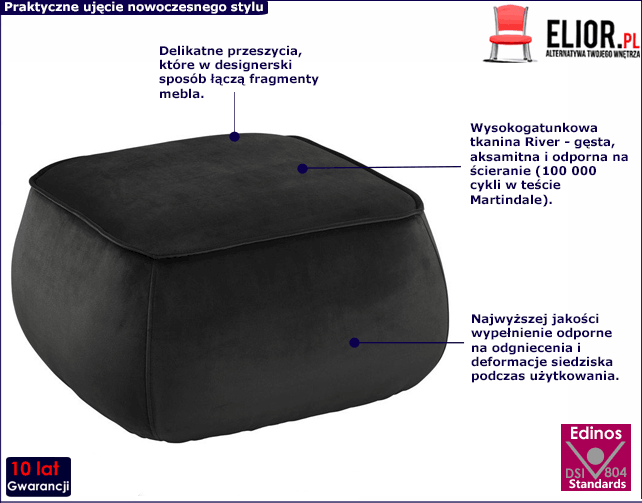 - Materiał: tapicerka wykonana z wysokogatunkowej tkaniny River, najwyższej jakości wypełnienie odporne na odgniecenia.