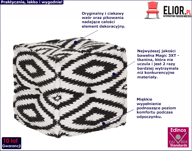 Dotyczy: Czarnobiała pufa kwadratowa z bawełny - DIREZIONE