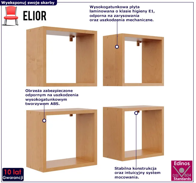 Wiszące kwadratowe półki ścienne Sevios olcha