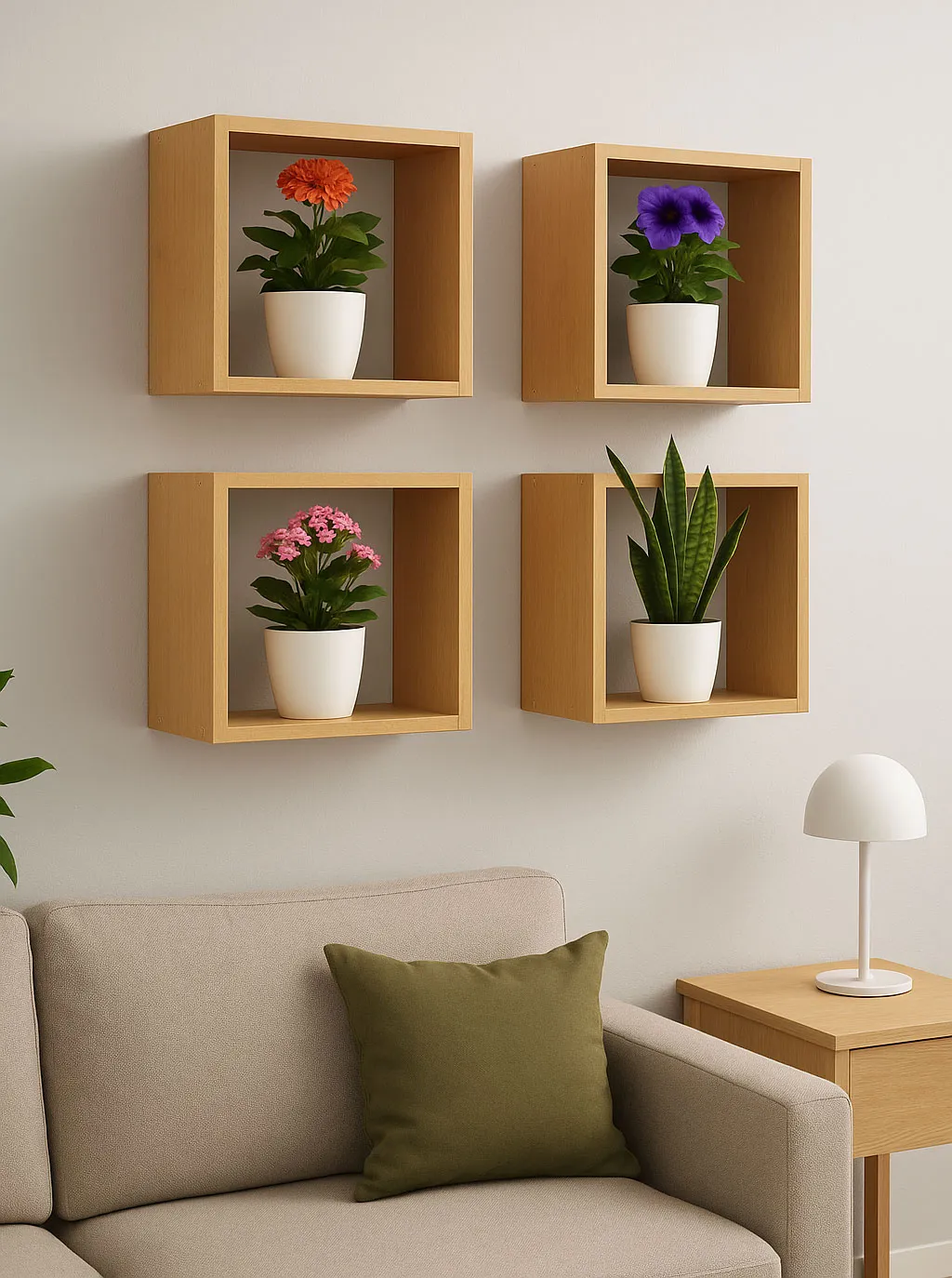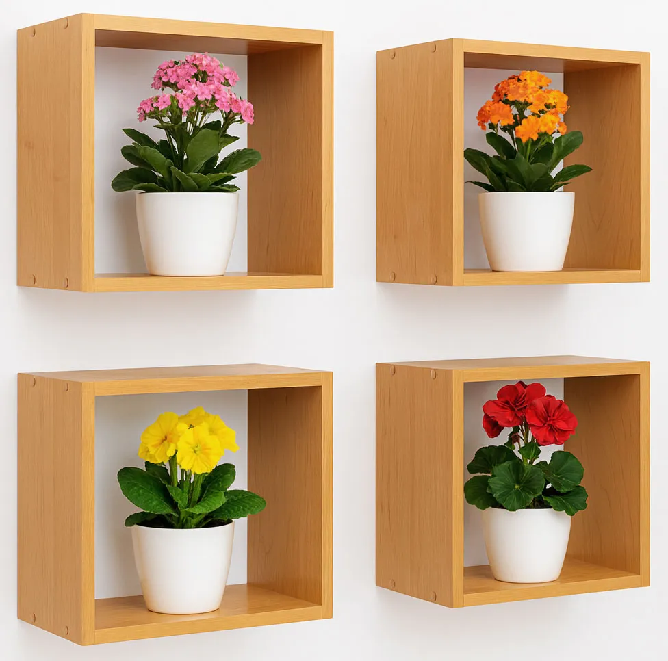 Kwadratowe półki ścienne na kwiaty olcha - Sevios