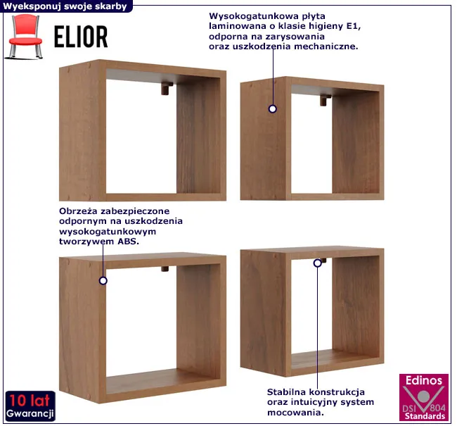 Dotyczy: Kwadratowe półki wiszące w kolorze wenge - Sevios