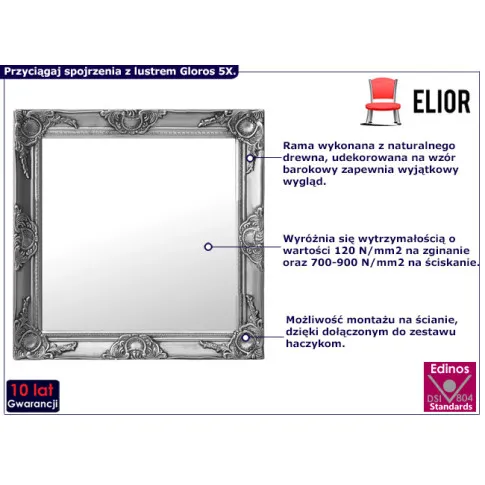 Dotyczy: Kwadratowe wiszące lustro w ramie w stylu glamour - Rafen 5X