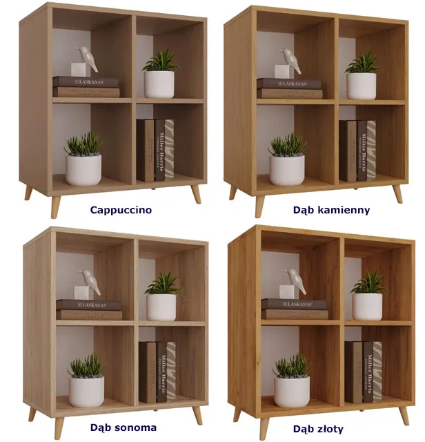 Kwadratowy regał na nóżkach Herion - 4 kolory