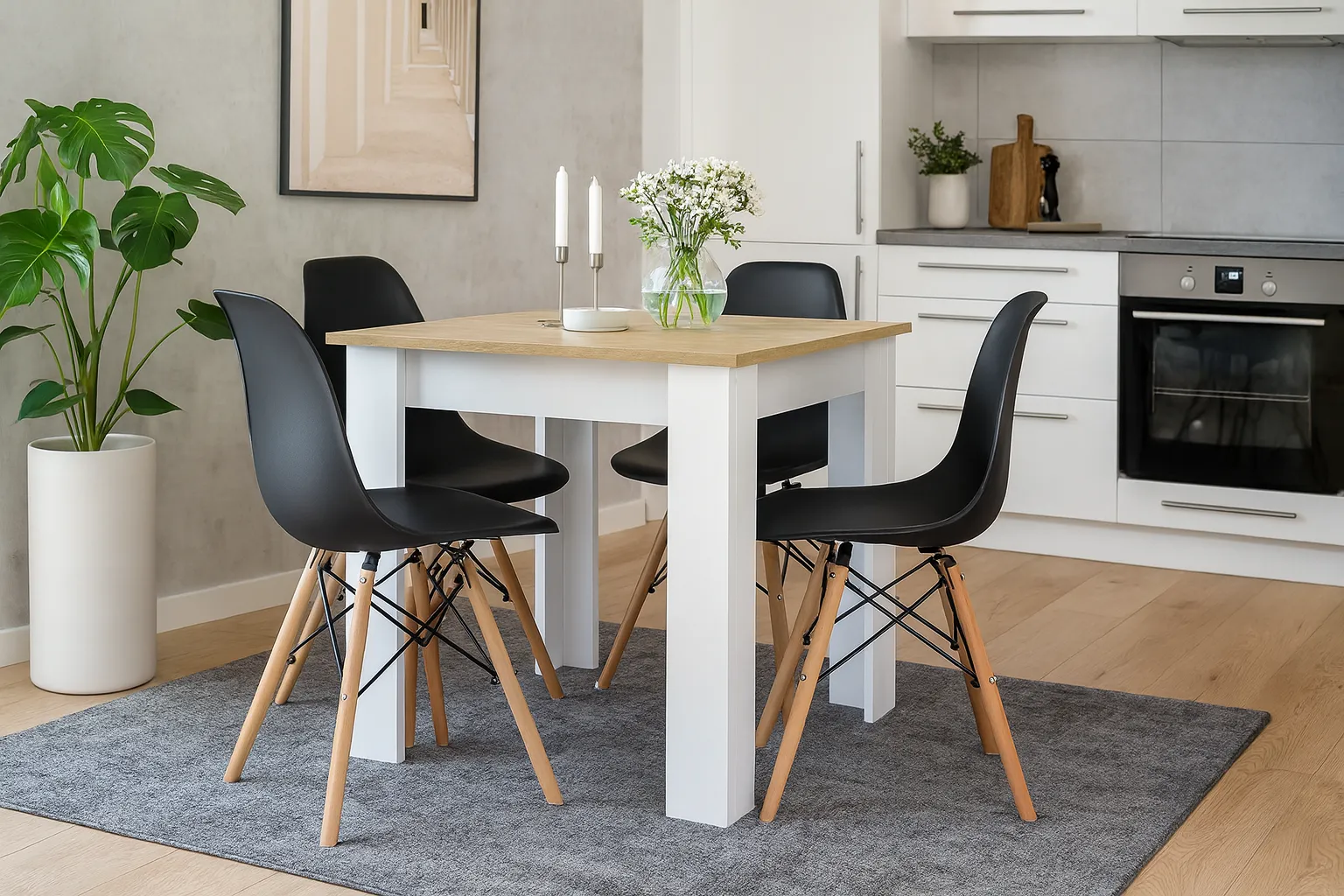 • Potrzebujesz więcej krzeseł? Czarne krzesło skandynawskie Naxin 4X z tego zestawu znajdziesz klikając w link.