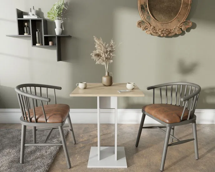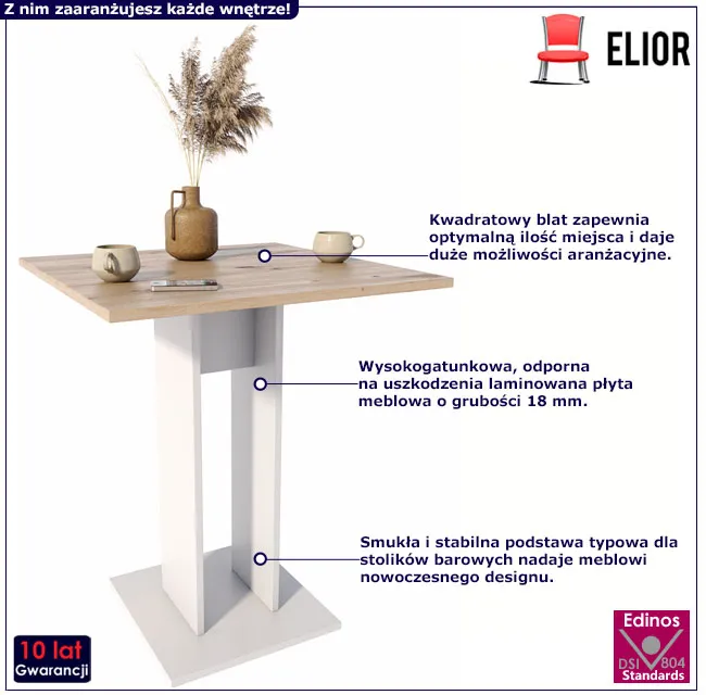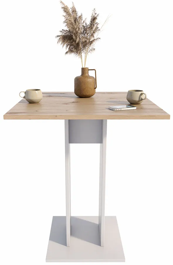 Kwadratowy stolik barowy dąb artisan + biały - Vosi