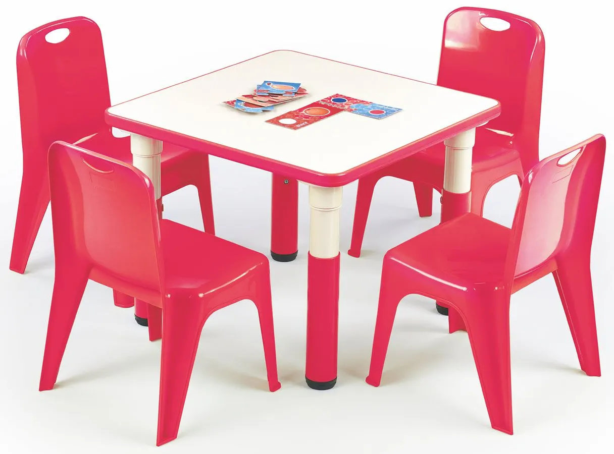 Kwadratowy, czerwony stolik do pokoju dziecka Oriset