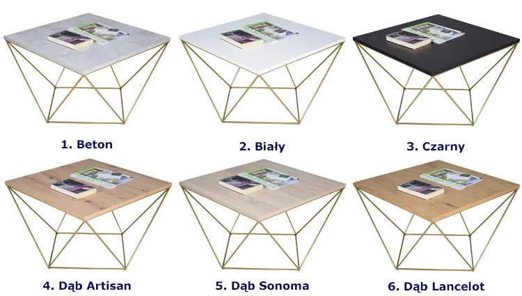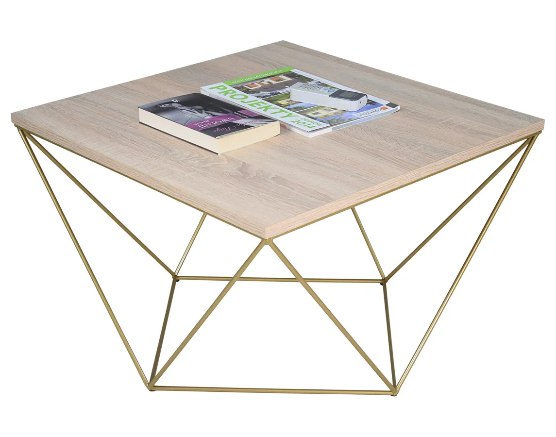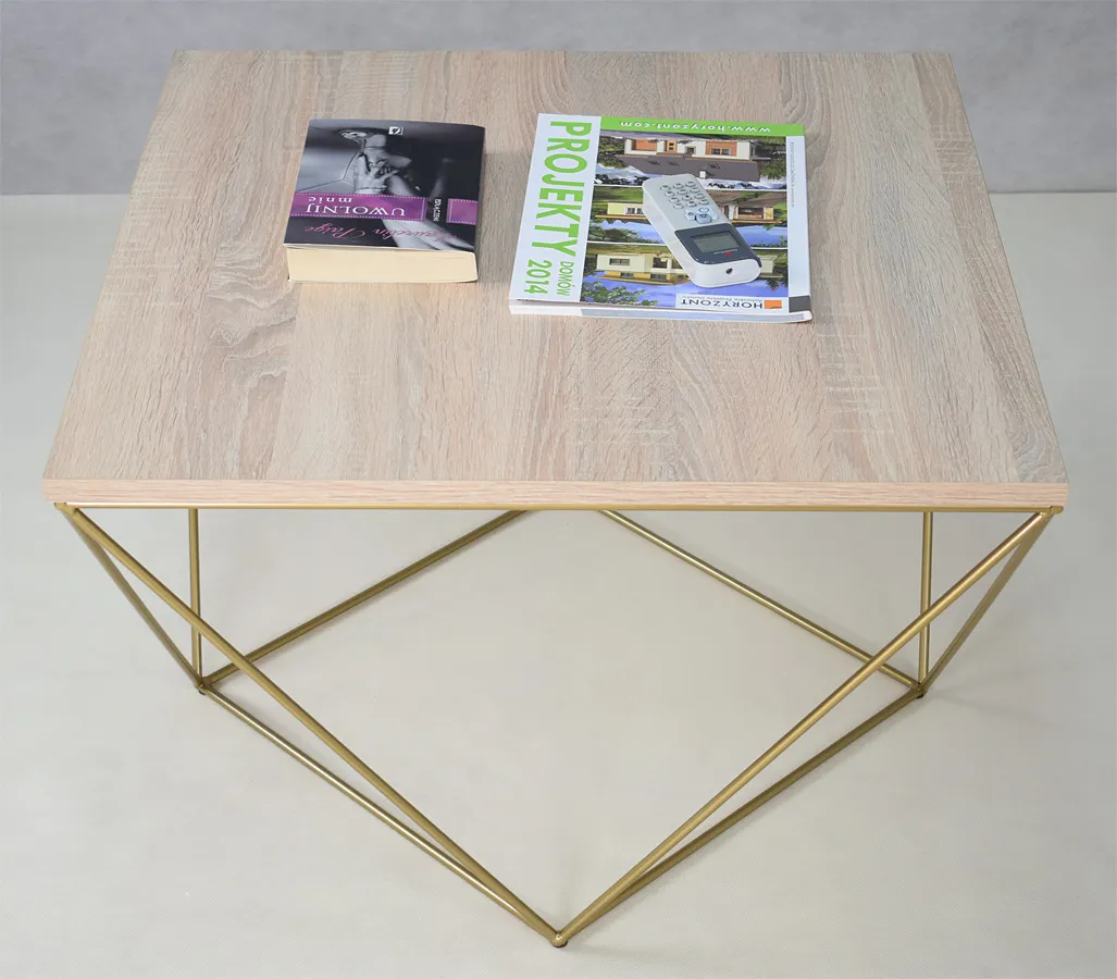 Kwadratowy stolik kawowy dąb sonoma + złoty - Mokita 4X
