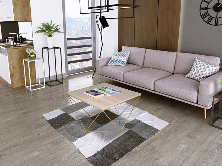 Stolik kawowy prezentuje się pięknie, idealnie pasuje do nowoczesnego wnętrza. Blat z dębu sonoma jest trwały, a złote nogi dodają mu elegancji. Montaż był stosunkowo prosty a jedyna uwaga dotycząca zakupu wiąże się z opóźnioną dostawa, czekałam na kuriera blisko tydzień