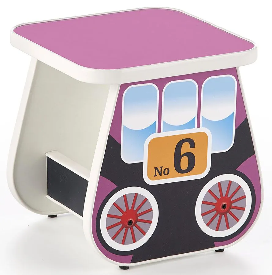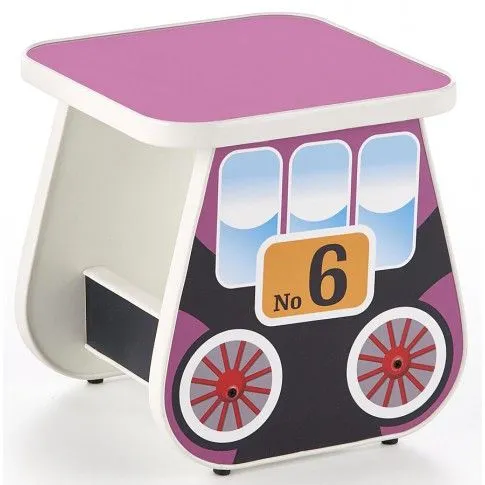 Fioletowy taboret w kształcie wagoniku Oresa 4X wyróżnia się nie tylko swoją unikalną formą, ale także zastosowaniem materiałów najlepszej jakości. Taborecik wykonany został z laminowanej płyty meblowej o klasie higieny E1, uszlachetnionej cienkimi filmami melaminowymi. Posiada także specjalne włókna ułożone różnokierunkowo o strukturze sinusoidalnej, co zapewnia nadanie jej cech jakościowych oraz wytrzymałościowych. Dla zwiększenia wytrzymałości i trwałości mebla, obrzeża mebla wykończono odpornym na uszkodzenia mechaniczne tworzywem PCV. Taboret dla dzieci ma zaokrąglone krawędzie, dzięki czemu jest bezpieczne w użytkowaniu i dziecko nie zrobi sobie krzywdy nawet pochłonięte szaloną zabawą.
