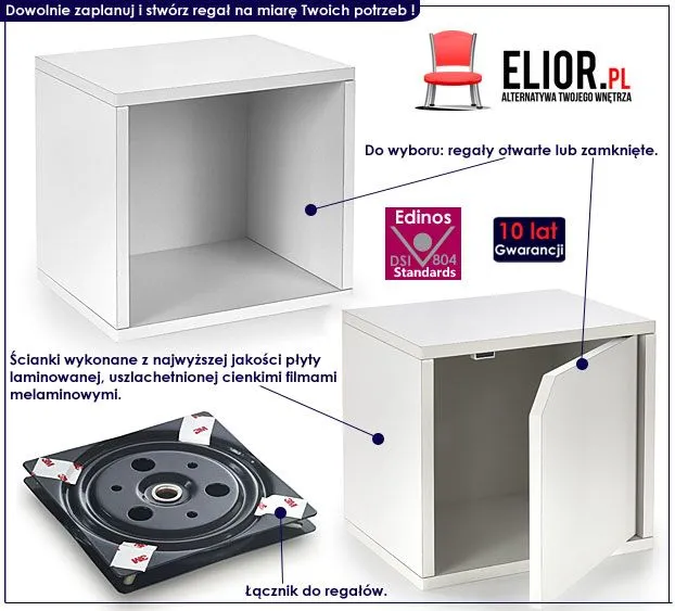 Komfortowy regał ZIBI wyróżnia się nie tylko swoją praktyczną formą i ekstrawersyjnym kształtem, ale także zastosowaniem materiałów najlepszej jakości. To dlatego cieszy się powodzeniem wśród osób lubiących nowatorskie rozwiązania i szybko zyskał status bestsellera. Dzięki regałom Karcheros możesz dowolnie komponować swój mebel z poszczególnych elementów i stworzyć rozmiar oraz gabaryt, który najbardziej odpowiada Twoim potrzebom praktycznym oraz wizualnym. Użyta do produkcji mebla naturalna płyta laminowana o objętości aż 93 dm3, została uszlachetniona cienkimi filmami melaminowymi. Posiada także specjalne włókna ułożone różnokierunkowo, co zapewnia nadanie jej cech jakościowych oraz wytrzymałościowych. Tylko jakość mebli marki Elior potwierdzona jest aż 10-letnią gwarancją! Odmień Swoje wnętrze już dziś i zaplanuj wymarzony "Kawałek Nieba"!
