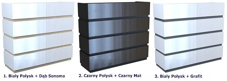 - Kolor: Fronty mebla w kolorze czarny połysk, listy środkowe - czarny mat. Kliknij w link i sprawdź także inne czarne komody w sklepie Edinos.pl. Stwórz swój praktyczny zestaw mebli.