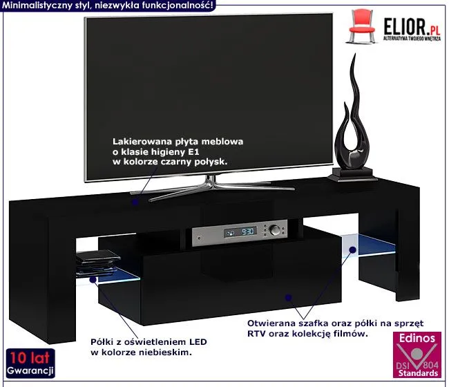 - Kolor: Fronty w kolorze czarny połysk, korpus - mat. Kliknij w link i sprawdź także inne czarne szafki RTV w sklepie Edinos.pl. Stwórz swój praktyczny zestaw mebli.