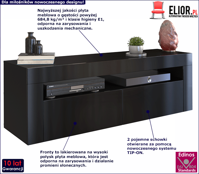 - Kolor: Fronty w kolorze czarny połysk, korpus - mat. Kliknij w link i sprawdź także inne czarne szafki RTV w sklepie Edinos.pl. Stwórz swój praktyczny zestaw mebli.