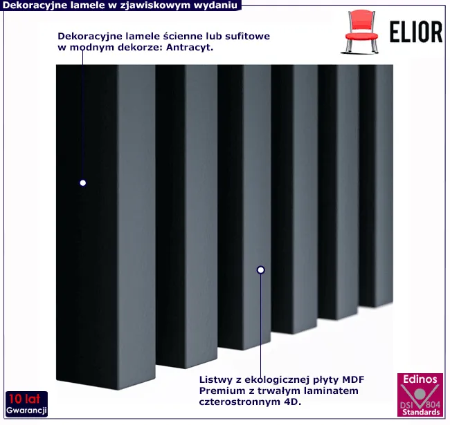 Dotyczy: Lamele ścienne 12 szt. czarny mat - Fares