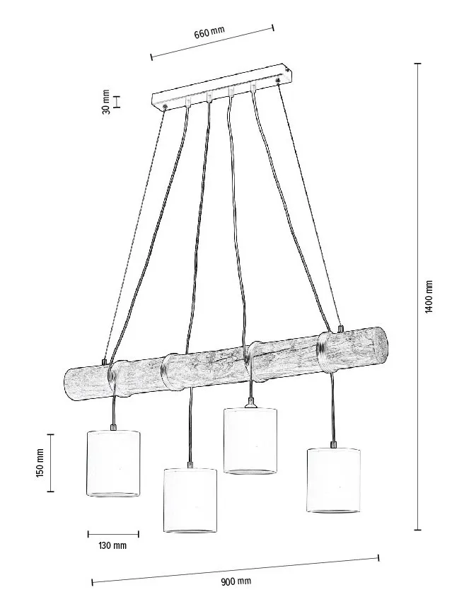 Lampa na drewnianej belce z abażurami - A02-Tufil