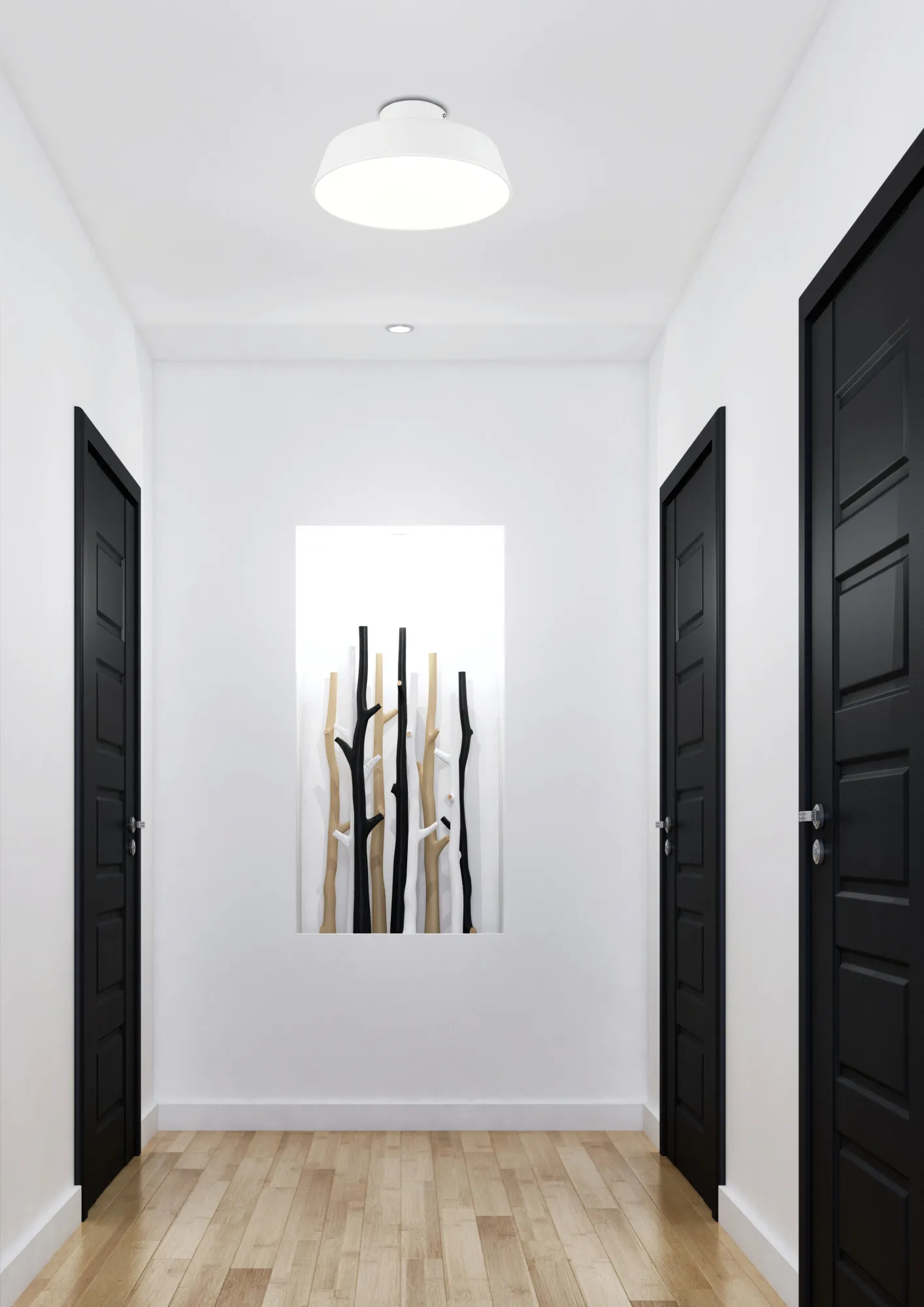 Rodzina metalowych lamp sufitowych inspirowanych stylistyką skandynawską ze zintegrowanym źródłem światla LED. Lampy występują w dwóch średnicach i trzech kolorach. Idealnie nadają się do pomieszczeń takich jak przedpokój, salon, kuchnia, garderoba, gabinet. Lampa o średnicy 40 cm w kolorze satynowym białym o naturalnej barwie światła.