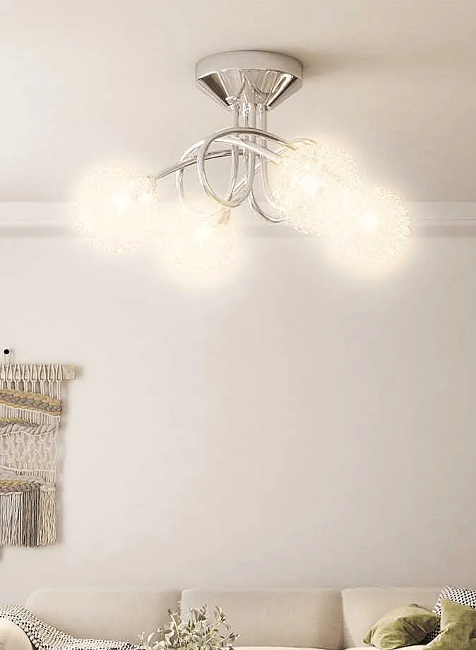 Lampa została wyposażona w 4 klosze, które zapewniają równomierne i komfortowe oświetlenie całego pomieszczenia. Dzięki swojej uniwersalnej formie bez trudu wkomponujesz ją zarówno w nowoczesne, jak i bardziej klasyczne wnętrza. Jej kompaktowy rozmiar sprawia, że świetnie sprawdza się także w mniejszych przestrzeniach, nie przytłaczając ich swoją obecnością. Przemyślana konstrukcja pozwala na szybki i bezproblemowy montaż, dzięki czemu w krótkim czasie odmienisz wystrój swojego domu. Całość dopełnia subtelny design, który łączy estetykę z praktycznością, tworząc harmonijne i stylowe oświetlenie.