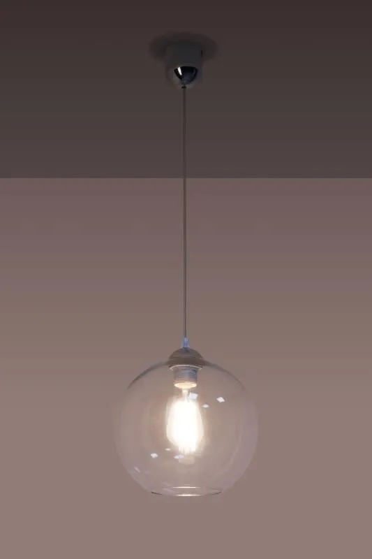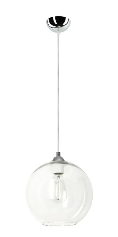 Lampa wisząca E352-Kardo to prosta a zarazem piękna konstrukcja. Okrągły, przezroczysty klosz skrywający pod sobą żarówkę nadaje produktowi nowoczesny, surowy wygląd. Doskonałe połączenie metalu i szkła nadaje produktowi niezmiernie estetyczny wygląd. Do jego wykonania zostały użyte wyłącznie materiały najwyższej jakości, przez co doskonale się prezentuje zachowując przy tym walory niezawodności.