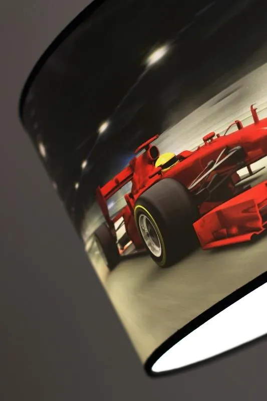 E895-Elga to urocza i funkcjonalna lampa wisząca. Piękny abażur z motywem wyścigowego auta nadaje lampie niezwykłego  wyglądu.  Lampa dedykowana jest do pokoju dziecięcego, któremu nada niezwykłego klimatu i stanie się jego pełnoprawnym, zachwycającym elementem dekoracyjnym. Emitowane z niej światło subtelnie rozproszy się po pomieszczeniu, zapewniając komfortowe oświetlenie. Produkt został wykonany z materiałów  najwyższej jakości, dzięki czemu będzie można cieszyć się jego wyglądem i funkcjonalnością przez wiele lat. To doskonała propozycja dla małych pasjonatów wyścigowych aut.