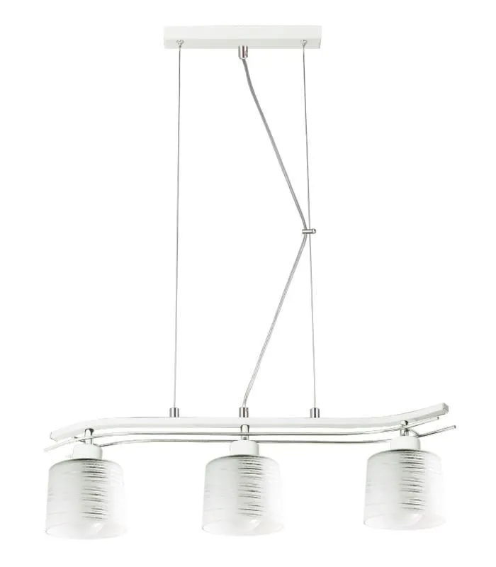E573-Vossia to klasyczna lampa wisząca o przyciągającym uwagę wyglądzie. Jej znakiem charakterystycznym są mleczno-białe, szklane klosze, które wprowadzą do wnętrza powiew świeżości. Oprawa oświetleniowa została wykonana z materiałów najwyższej jakości, dzięki czemu prezentuje się wspaniale na każdym suficie.