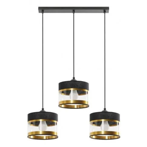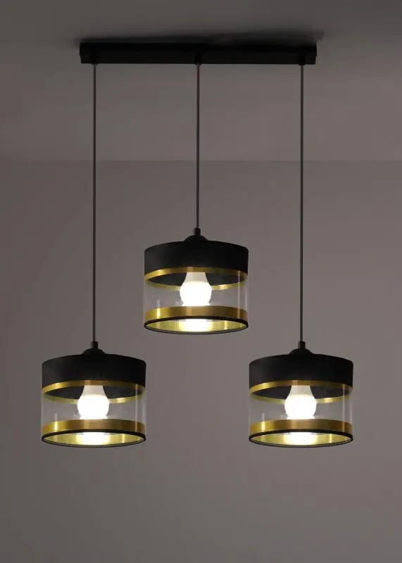 Lampa wisząca E663-Bamsa to niesamowite oświetlenie, które zachwyci najbardziej wymagających klientów. Perfekcyjne połączenie czarnego i złotego sprawia, że lampa prezentuje się wyjątkowo elegancko. Przezroczysty pasek na kloszu spowoduje, że światło wydobywające się z wnętrza klosza będzie pięknie przenikało do pomieszczenia. Lampa idealnie sprawdzi się w każdym stylu wystroju wnętrza, jednakże dedykowana jest w szczególności do nowoczesnych, stylowych aranżacji. Fenomenalnie sprawdzi się w salonie, jadalni, sypialni, kuchni, korytarzu oraz garderobie.
