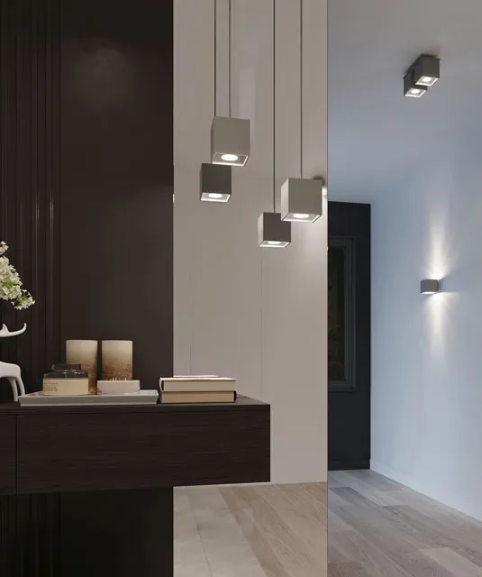 Szara lampa wisząca kostka E816-Lenobri w stylu minimalistycznym