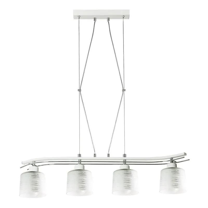 E574-Vossia to klasyczna lampa wisząca o przyciągającym uwagę wyglądzie. Jej znakiem charakterystycznym są mleczno-białe, szklane klosze, które wprowadzą do wnętrza powiew świeżości. Oprawa oświetleniowa została wykonana z materiałów najwyższej jakości, dzięki czemu prezentuje się wspaniale na każdym suficie.